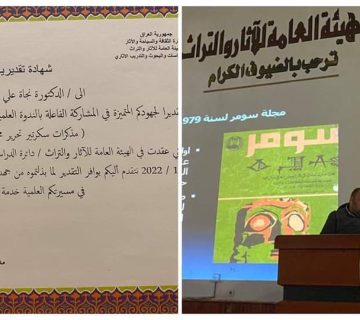 تدريسية بقسم الحضارة الإسلامية تحاضر في ندوة علميةCois08/01/2022حاضرت التدريسية بقسم الحضارة والآثار الإسلامية الدكتورة نجاة على محمد التميمي في الندوة العلمية “مذكرات سكرتير تحرير مجلة سومر ”...المزيد