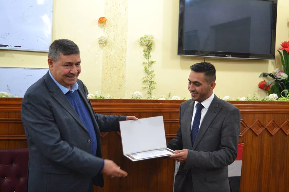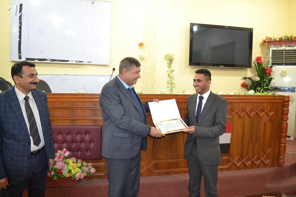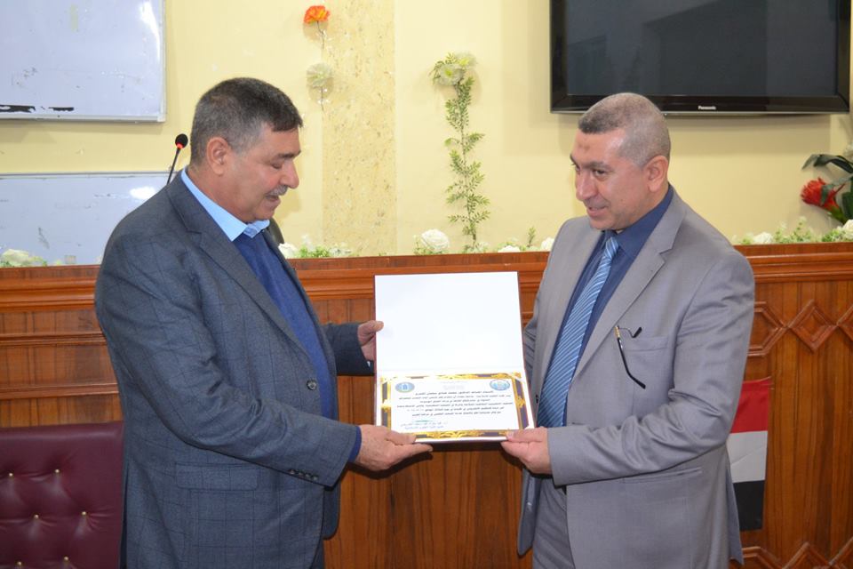 اما الدكتور حسن علي فقد عرف التعليم الإلكتروني بانه طريقة للتعليم باستخدام وسائل الاتصال الحديثة من الحاسوب وشبكاته ووسائطه المتعددة من صوت وصورة ورسومات وأساليب بحث ومكتبات إلكترونية وكذلك شبكة الإنترنت سواء كان ذلك عن بعد أو في القاعة الدراسية . وبشكل آخر يمكن القول بأنه استخدام التقنية بجميع أنواعها في إيصال المعلومات للمتعلم بأقصر وقت وأقل جهد وأكبر فائدة .وفي نهاية الورشة كرم السيد العميد المحاضرين بإهدائهم كتاب شكر وتقدير لجهودهم المبذولة وتعاونهم في توضيح مفاهيم التعليم الالكتروني للأساتذة من خلال الورشة وحث جميع الاساتذة على العمل بهذا النظام .