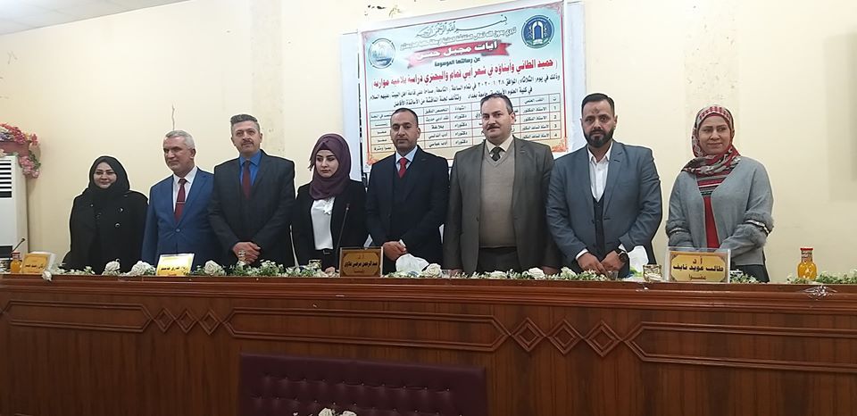 ناقشت كلية العلوم الاسلامية بجامعة بغداد رسالة _( حُميد الطائي وأبناؤه في شعر أبي تمام والبحتري دراسة بلاغية موازنة ) للطالبة آيات مجبل حسن من قسم اللغة العربية على قاعة ال البيت.