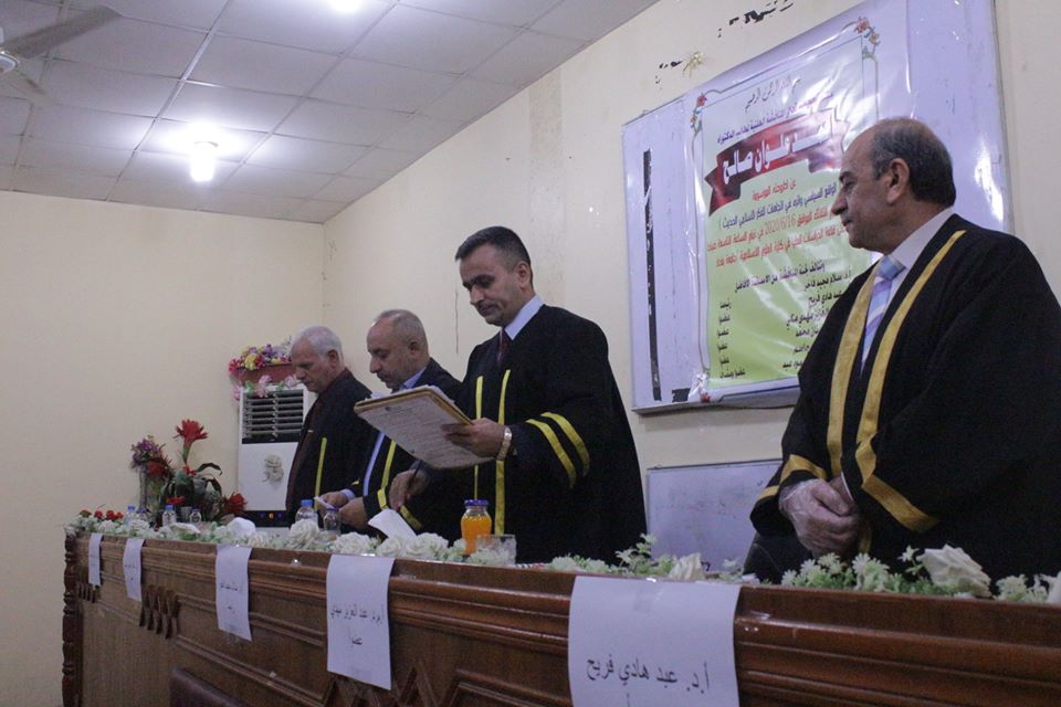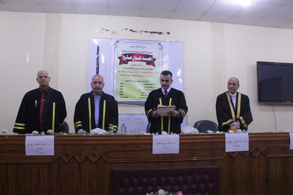 ناقشت كلية العلوم الاسلامية بجامعة بغداد اطروحة دكتورا على قاعة ال البيت عليهم السلام بمبنى كلية العلوم الاسلامية