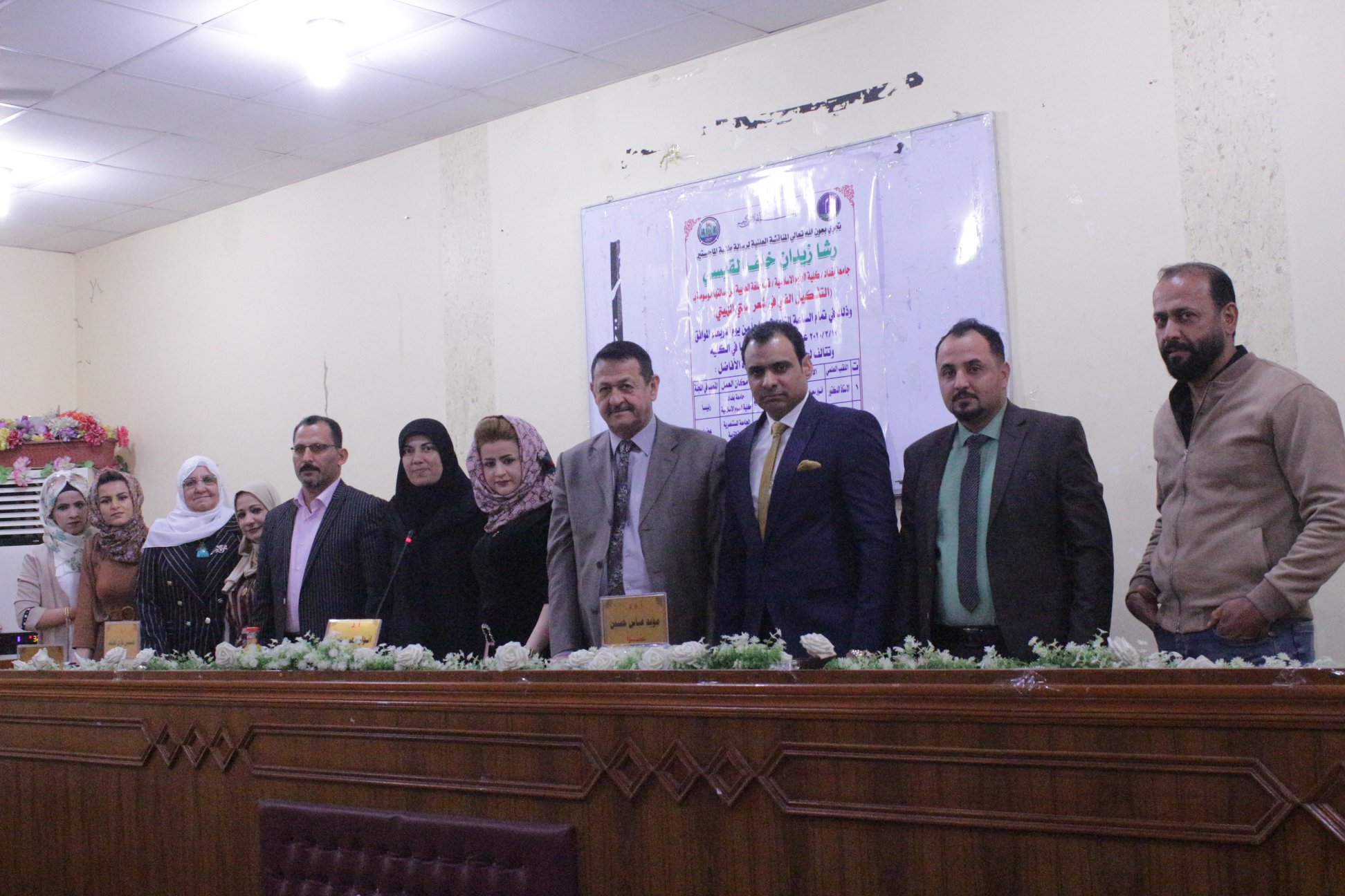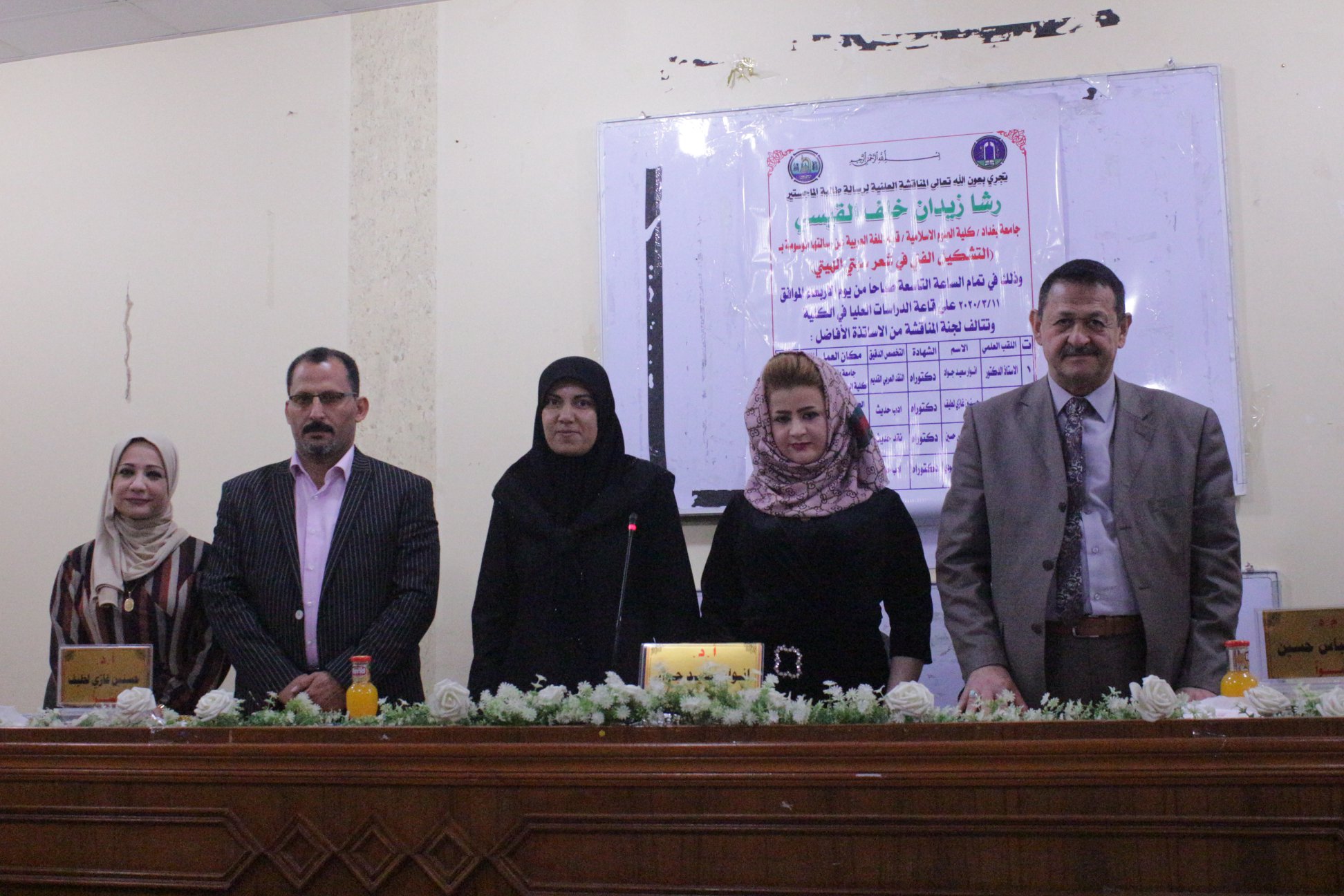 ناقشت كلية العلوم الاسلامية بجامعة بغداد رسالة ماجستير على قاعة ال البيت عليهم السلام بمبنى كلية العلوم الاسلامية