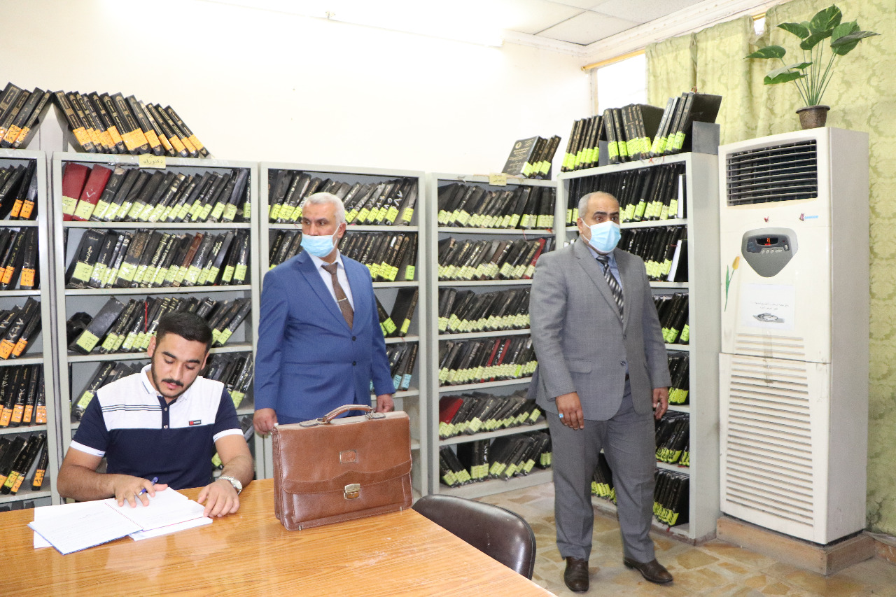 اجرى عميد كلية العلوم الإسلامية بجامعة بغداد الأستاذ الدكتور نعمة دهش فرحان جولة تفقدية شملت شعبة المكتبة المركزية لكلية العلةم الإسلامية.