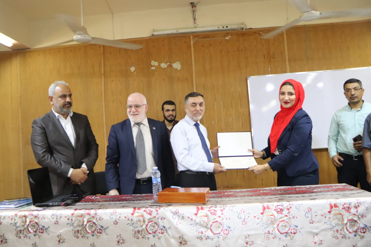وفي ختام الاحتفاء كرم عميد الكلية المحتفى به، وتم التقاط الصور التذكارية وسط اجواء من الغبطة والسرور.