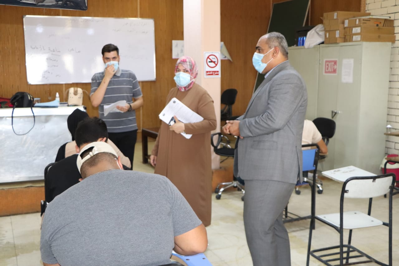 واصل عميد العلوم الإسلامية الأستاذ الدكتور نعمة دهش فرحان منذ الصباح الباكر الإجراءات اللوجستية والفنية والإدارية الخاصة بالامتحانات الحضورية، مشددا على إحراز السلامة العامة في الامتحانات الحضورية. كذلك شملت جولته القاعات الامتحانية مرفوقا بمعاون العميد للشؤون العلمية والدراسات العليا الأستاذ الدكتور ثائر إبراهيم الشمري، وقد شدد على توفير المناخات العلمية والنفسية المناسبة في هذه الأجواء الحارة والمصحوبة بانتشار فايروس كورونا، ودفع ذلك عن الطلاب الممتحنين.