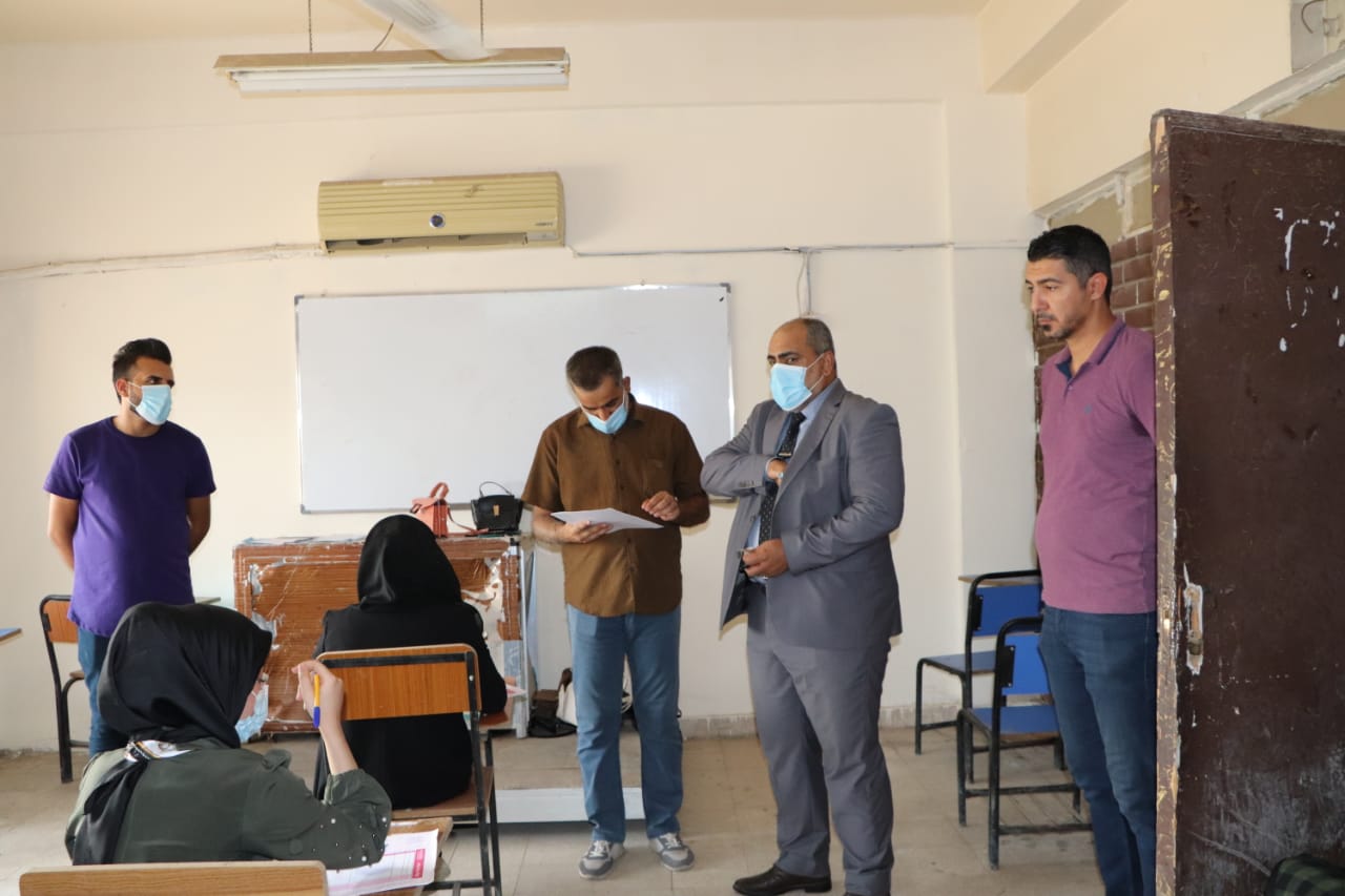 واصل عميد العلوم الإسلامية الأستاذ الدكتور نعمة دهش فرحان منذ الصباح الباكر الإجراءات اللوجستية والفنية والإدارية الخاصة بالامتحانات الحضورية، مشددا على إحراز السلامة العامة في الامتحانات الحضورية. كذلك شملت جولته القاعات الامتحانية مرفوقا بمعاون العميد للشؤون العلمية والدراسات العليا الأستاذ الدكتور ثائر إبراهيم الشمري، وقد شدد على توفير المناخات العلمية والنفسية المناسبة في هذه الأجواء الحارة والمصحوبة بانتشار فايروس كورونا، ودفع ذلك عن الطلاب الممتحنين.