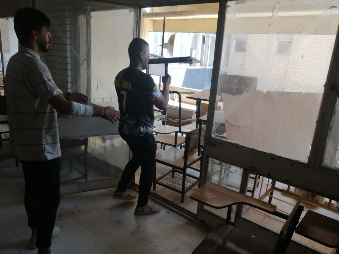 الملاكات الخدمية في الكلية، وفي ضمن سعيها الحثيث للارتقاء بالواقع الخدمي للكلية، باشرت بعمليات تجهيز سقوف واقية من الحرارة والمطر، وإصلاح الشبابيك الداخلية للقطاعات الدراسية، فضلا عن حملة تنظيف دورية للساحات العامة. وقد جرى العمل على رفع الأنقاض وما تراكم من نفايات ثقلية وخفيفة، و تسوية الطريق أمام حركة تنقل المركبات التي تتخذ هذا الطريق ممرا للدخول والخروج.