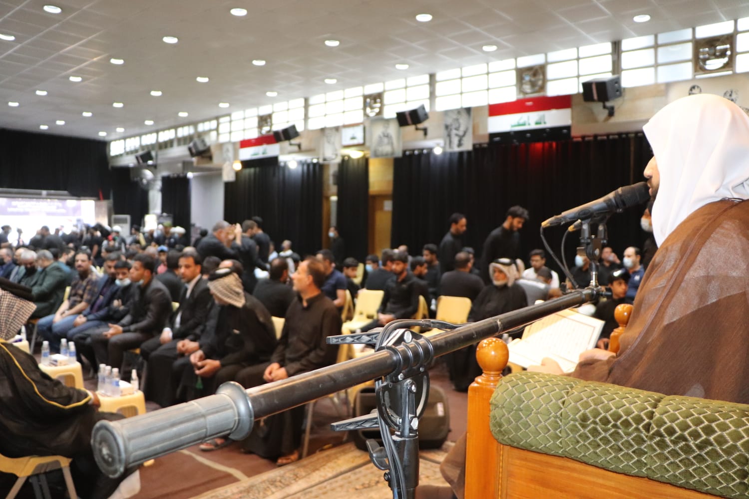 الوفد الذي ترأسه عميد الكلية الأستاذ الدكتور نعمة دهش فرحان، ضم عدد من أعضاء مجلس الكلية واساتذتها، قدم التعازي بهذا المصاب الجلل في مجلس العزاء، كذلك تمت تلاوة قرآنية من قبل القارئ الدولي عتيد الرضوي على اسماع المعزين