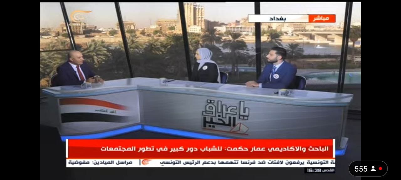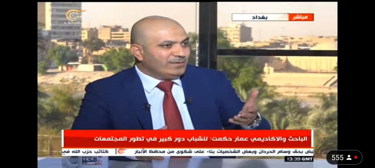 استضافت قناة الميادين الفضائية معاون عميد كلية العلوم الإسلامية لشؤون الطلبة الأستاذ المساعد الدكتور عمار حكمت، وذلك في حديث عن مبادرات الشباب في الجامعات.