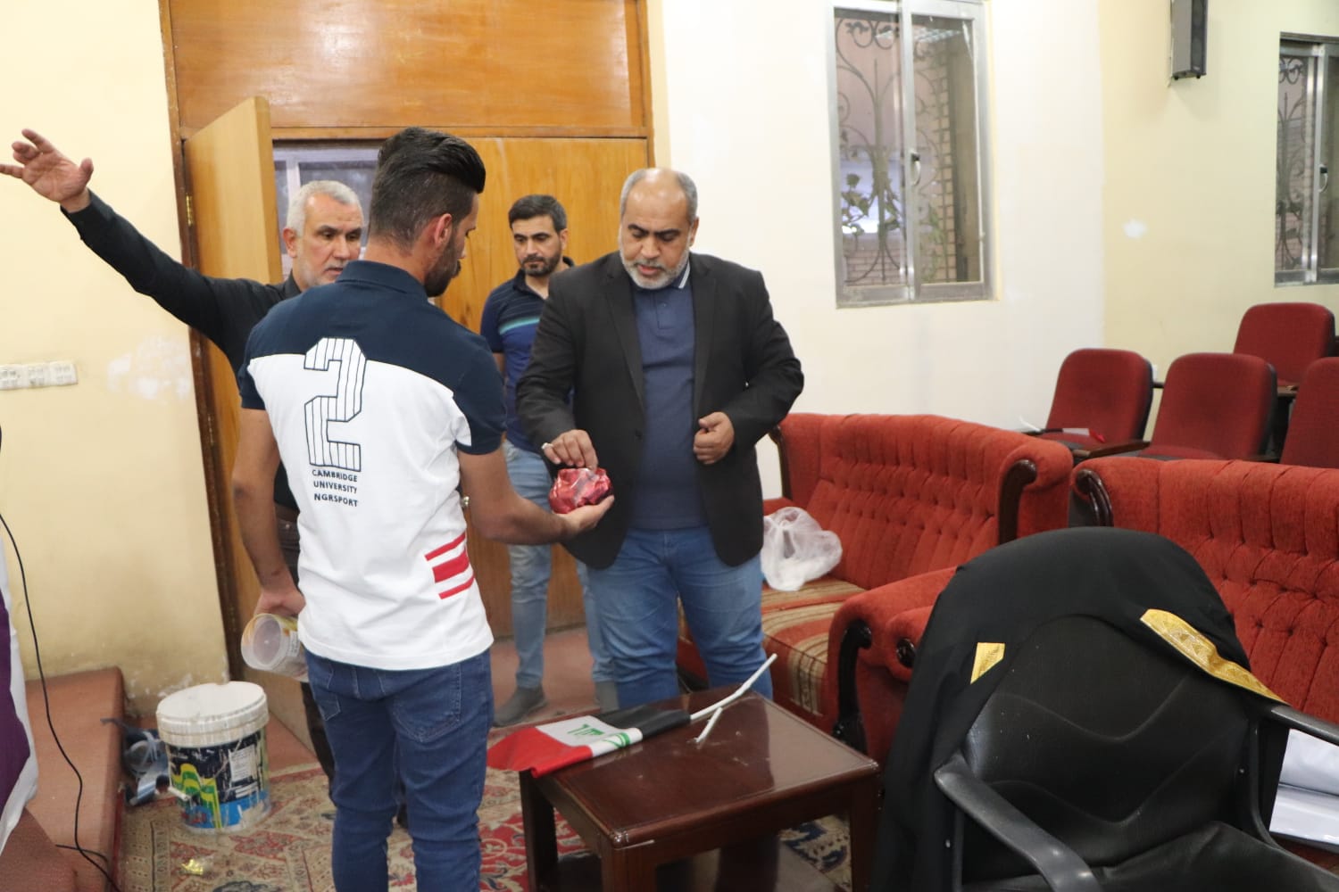 الحملة التي شرعت بتوجيه عميد كلية العلوم الإسلامية الأستاذ الدكتور نعمة دهش فرحان ومتابعة المعاون الإداري الأستاذ المساعد الدكتور أركان رحيم جبر، شملت صيانة اثاث القاعة، وعمليات تنظيف واسعة، كذلك ترميم الجدران والمنشات الموجودة، كما شملت عملية تصليح الانارة في القاعة والاجهزة الكهربائية الملحقية بالقاعة.