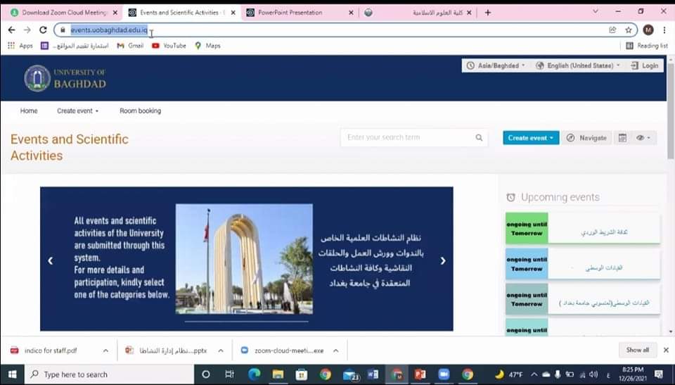 نظمت وحدة تكنولوجيا المعلومات بالتعاون مع وحدة التعليم المستمر ، ورشة عمل بشأن نظام إدارة النشاطات العلمية indico. بتاريخ ٢٦/١٢/٢٠٢١