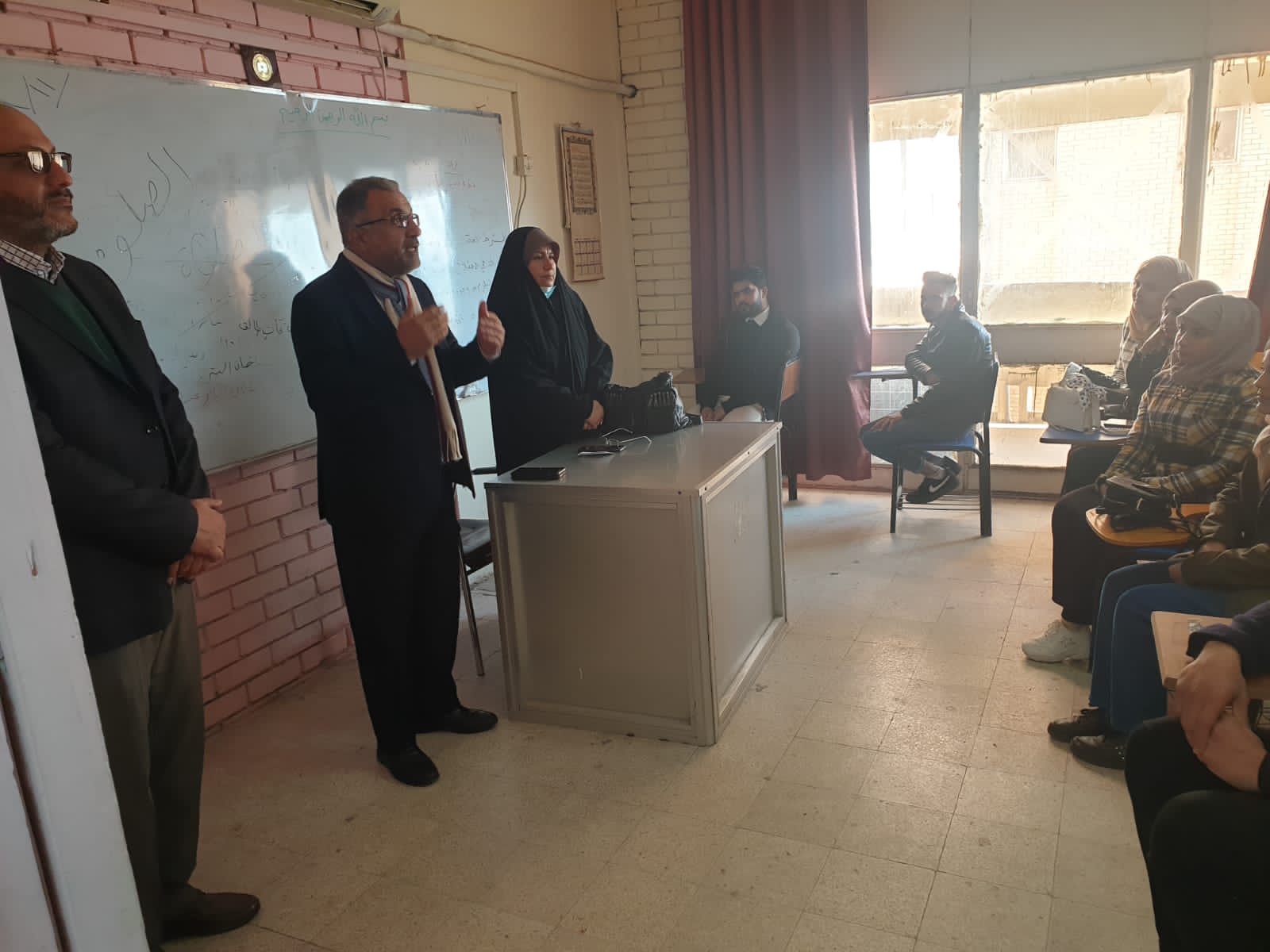 المعاون العلمي تحدث عن المبادئ الإسلامية وضرورة التزام الطلبة بها، كذلك وجه بعض الإرشادات التربوية المهمة، ومنها أهمية مراعاة اختلاف بيئة المدرسة عن الكلية وأهمية الكلية من الناحية الدينية والعلمية،وحث الطلبة على السعي للمثابرة والجدية في الدراسة، وذلك لنيل مراتب النجاح والتفوق.