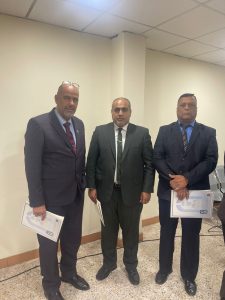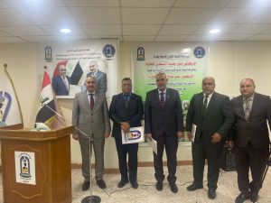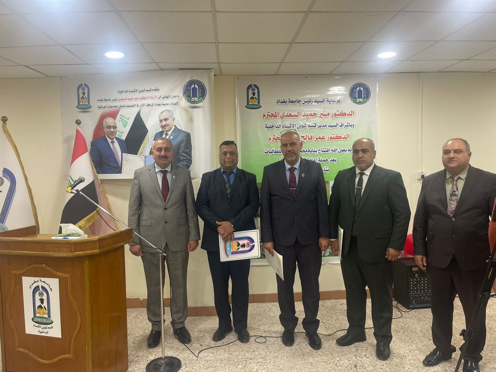رئيس جامعة بغداد مرفوقا بالمساعد الإداري الأستاذ الدكتور سرمد فؤاد، ومدير الاقسام الداخلية الدكتور عمر فالح حسن.