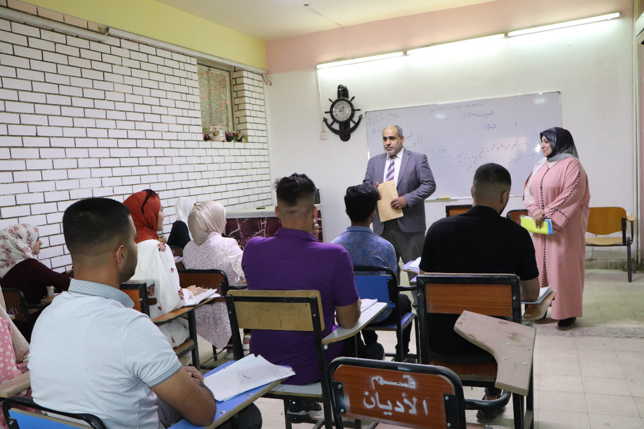 باشرت كلية العلوم الاسلامية بجامعة بغداد الامتحانات النهائية الحضورية للكورس الدراسي الثاني لطلبة الدراسات العليا للعام الدراسي 2021/2022.، وخلال الامتحان تفقد الاستاذ الدكتور نعمة دهش فرحان عميد كلية العلوم الاسلامية سير الامتحانات في يومها الاول مطلعا على الاجراءات التنظيمية التي اتخذتها الكلية واقسامها لتوفير متطلبات الامتحان وبما يحقق الانسيابية العالية فيها .