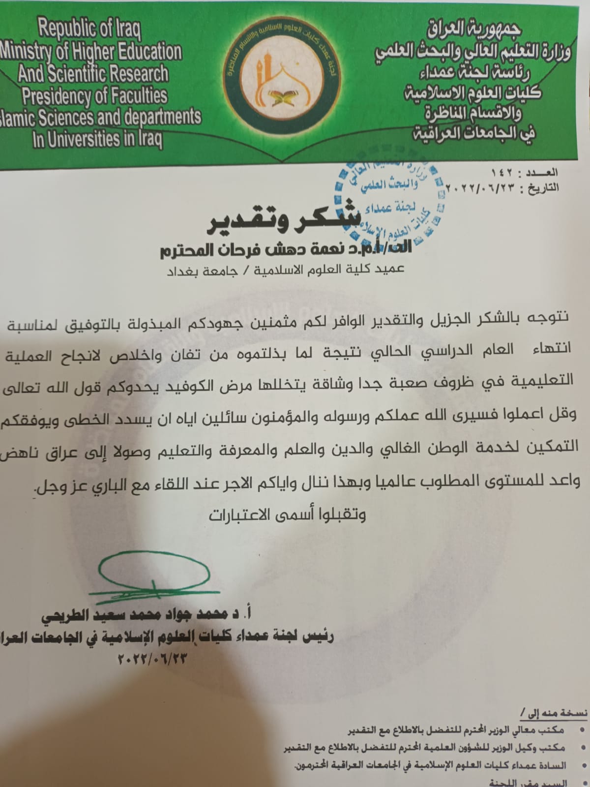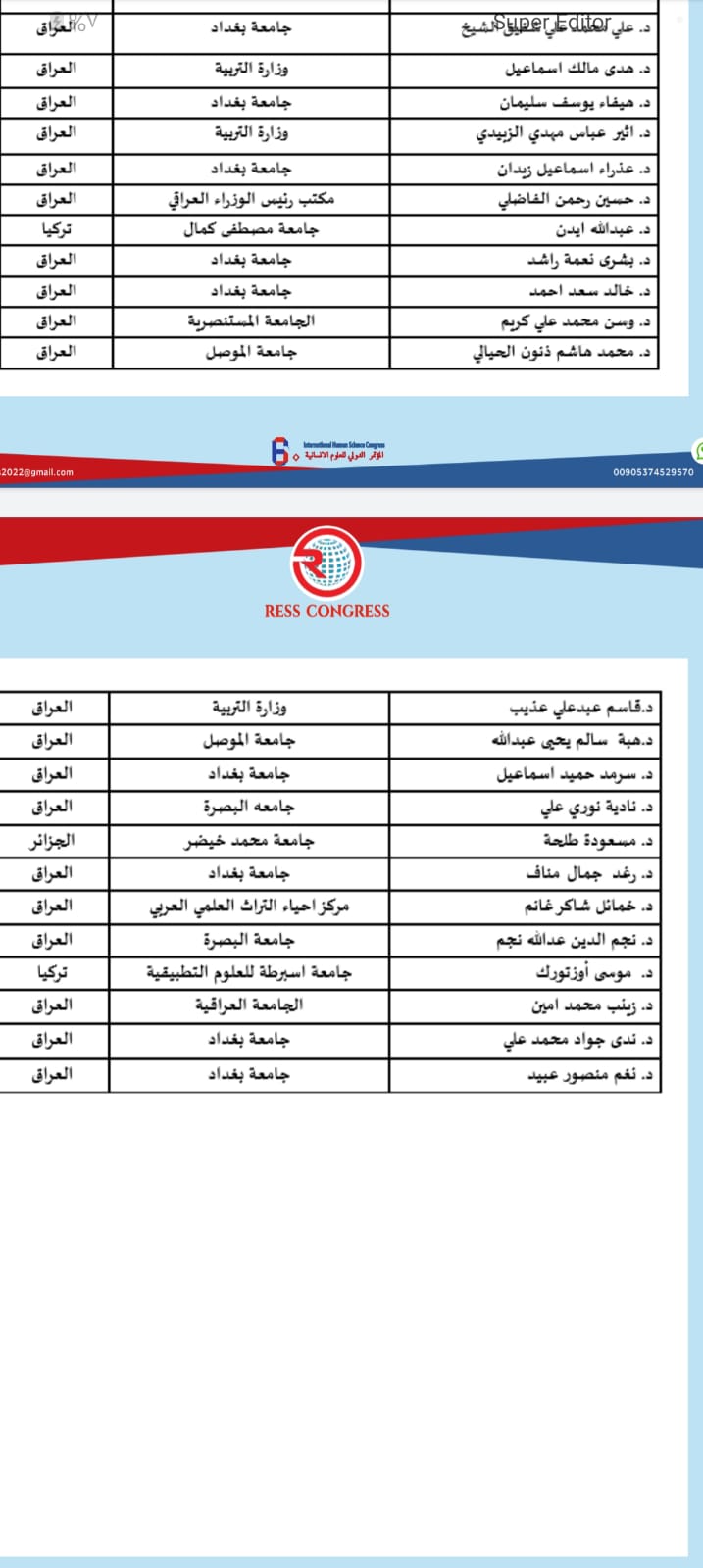 اختيرت التدريسية في كلية العلوم الاسلامية قسم العقيدة الاسلامية الدكتورة خمائل شاكر عضوا في اللجنة التحضيرية في المؤتمر العلمي الدولي السادس للعلوم الانسانية ( ريس 6) وتحت شعار (الابتكارات في العلوم الاجتماعية والتحول الرقمي للمدة 25-26-27 اغسطس 2022 في مدينة اسطنبول التركية .