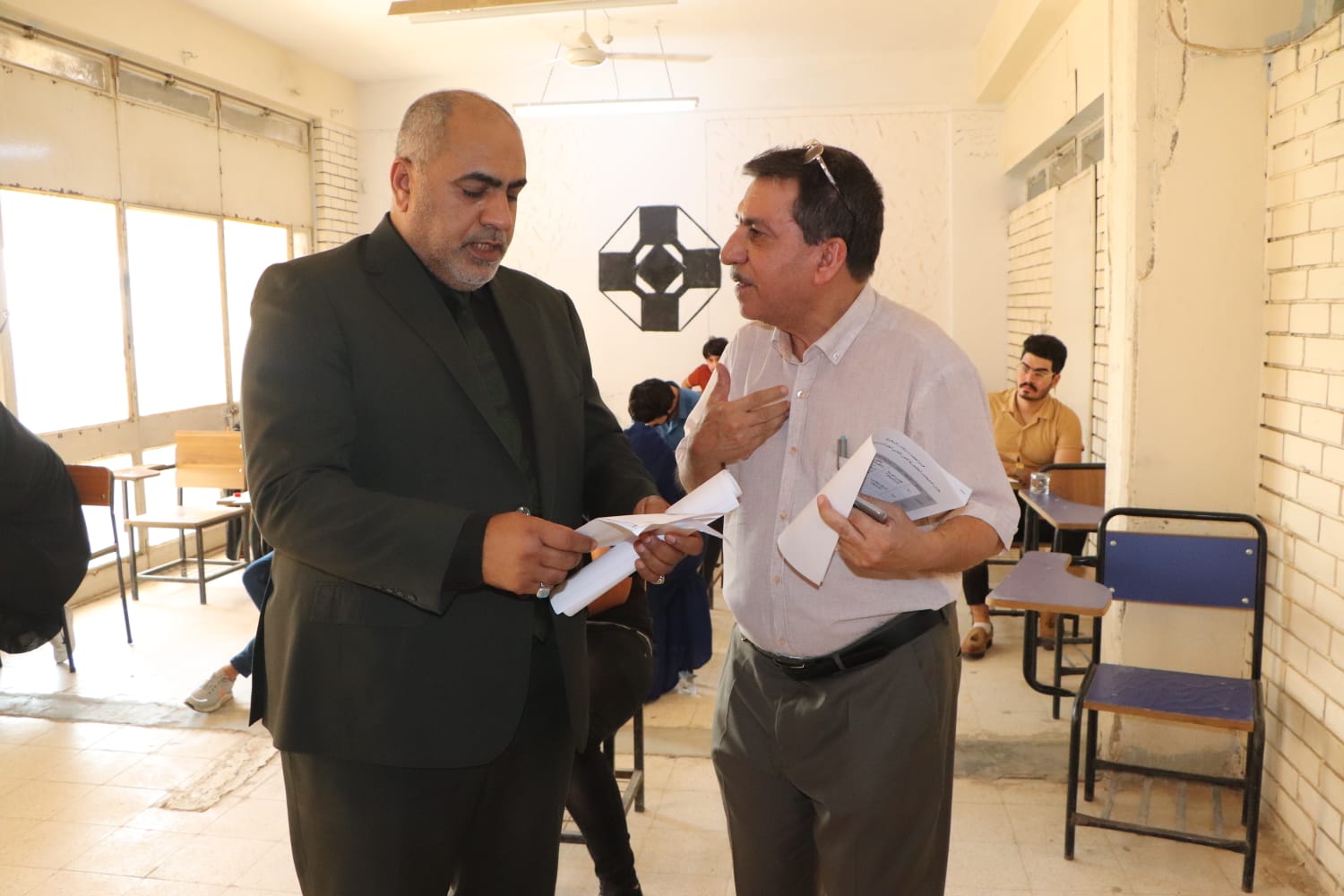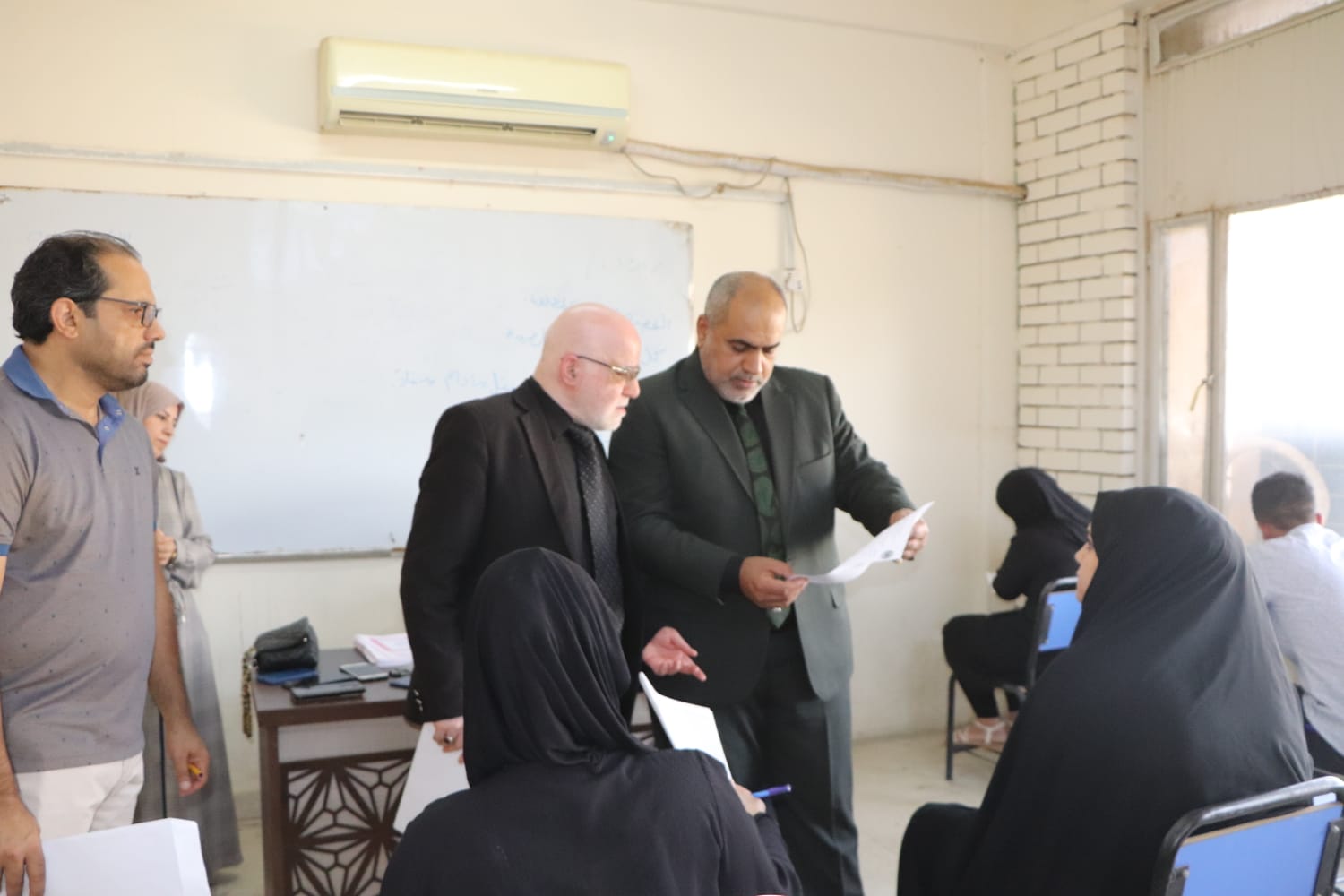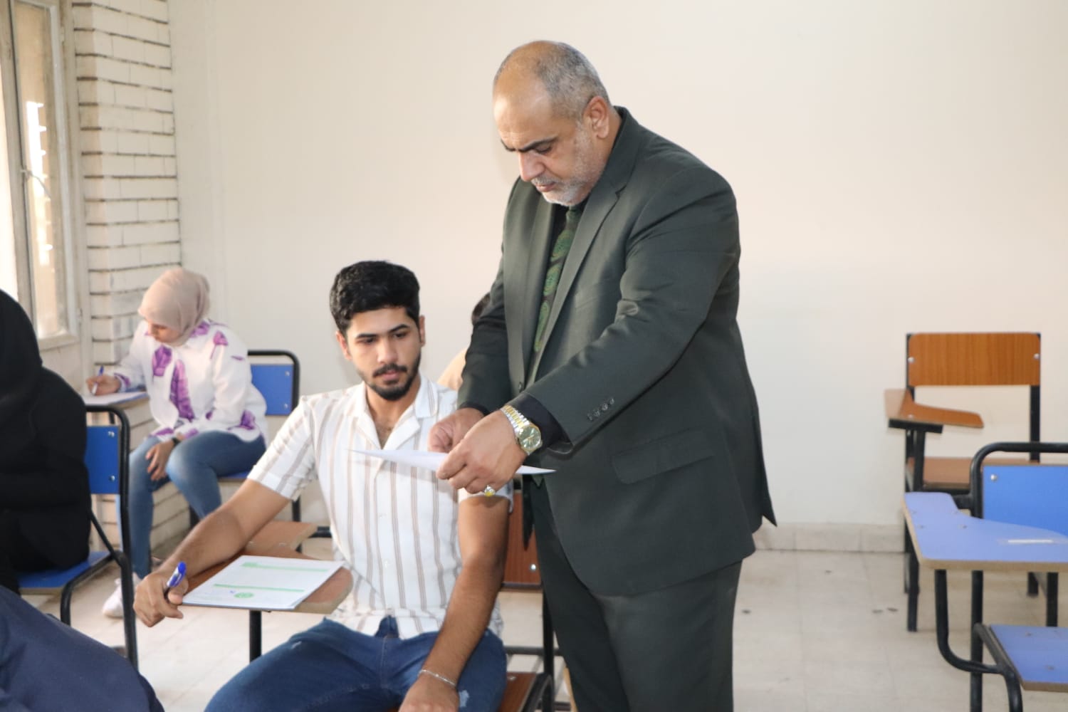 تفقد الأستاذ الدكتور نعمة دهش فرحان عميد كلية العلوم الاسلامية بجامعة بغداد لليوم الثاني على التوالي سير الامتحانات النهائية للدور الثاني لطلبة الدراسات الاولية،وأطلع على سير الامتحانات الحضورية ، و شدد على ضرورة تعزيز متطلبات الامتحانات الحضورية بما في ذلك متابعة القاعات وتهيئتها وتعفيرها.