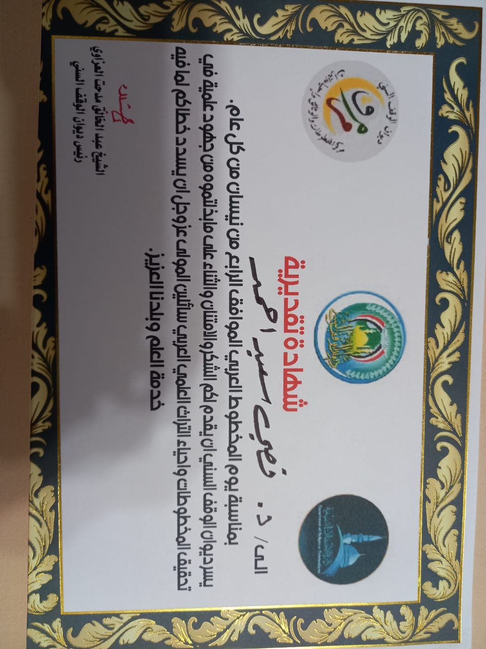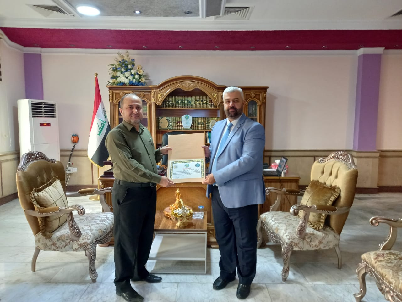 كرم رئيس ديوان الوقف السني الشيخ عبد الخالق مدحت العزاوي الدكتور قصي سعيد احمد التدريسي في قسم الشريعة في كلية العلوم الاسلامية بجامعة بغداد بشهادة تقديرية مع شكره وامتنانه لما بذله من جهود علمية في تحقيق المخطوطات واحياء التراث العلمي العربي .