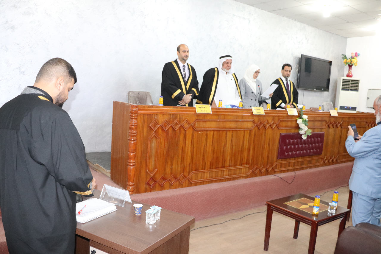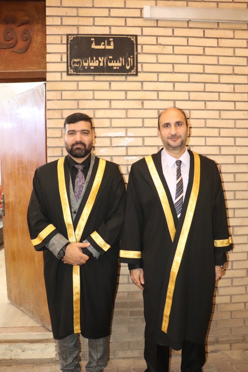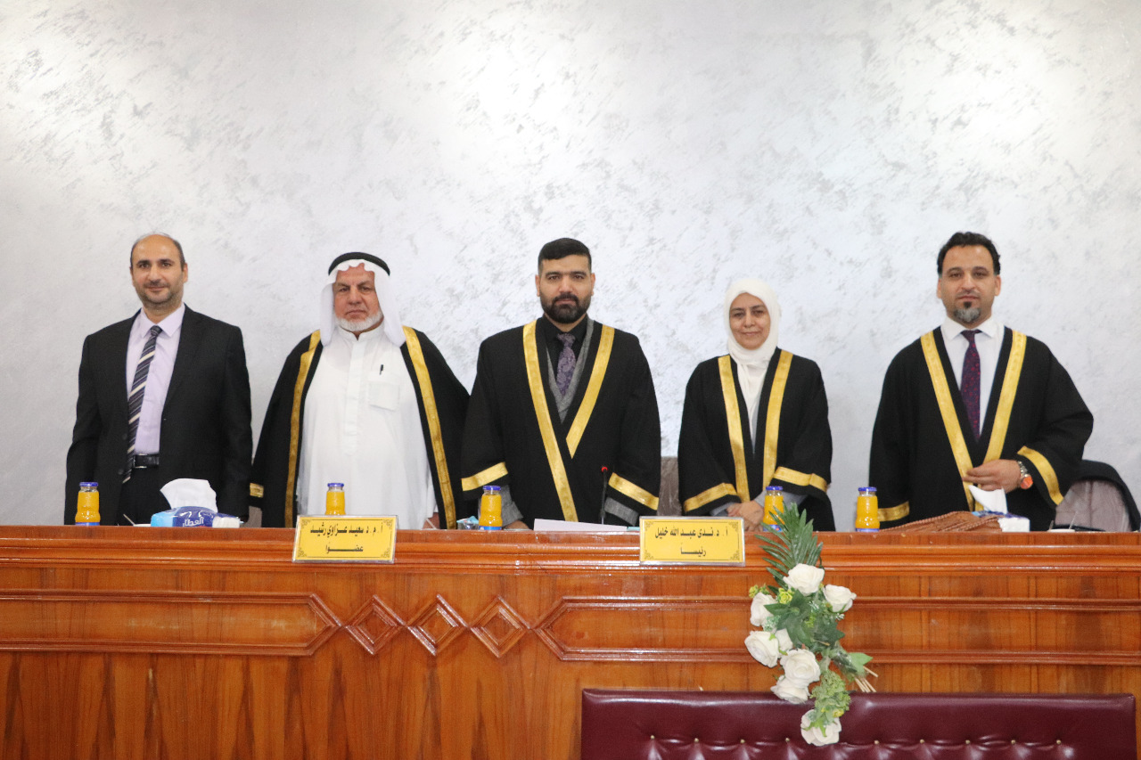 وحضر المناقشة الاستاذ الدكتور نعمة دهش فرحان عميد الكلية ومعاونه الاداري الدكتور اركان رحيم جبر لمراقبة الاجواء العلمية عن كثب