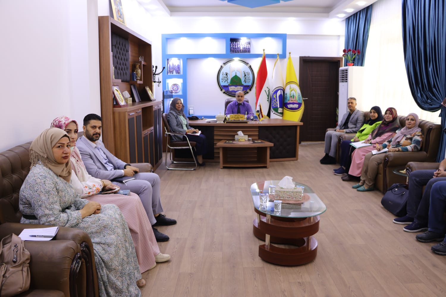 الاجتماع ناقش النتاجات العلمية للاساتذة وكيفية رفعها على موقع تقييم الاداء الالكتروني وانجازها بالسرعة الممكنة.