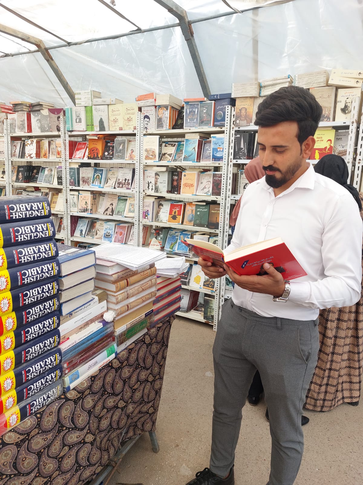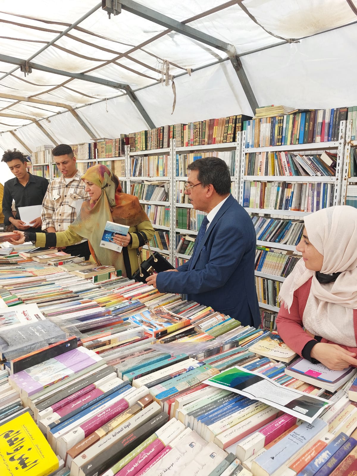 الوفد الذي ضم الزركاني وعدد من اساتذة القسم وطلبته ، اجروا جولة في معرض الإنتاجات العلمية لأساتذة كلية الاداب للتعرف على المطبوعات والنتاجات الفكرية المعروضة التي تضمنت تخصصات متنوعة.