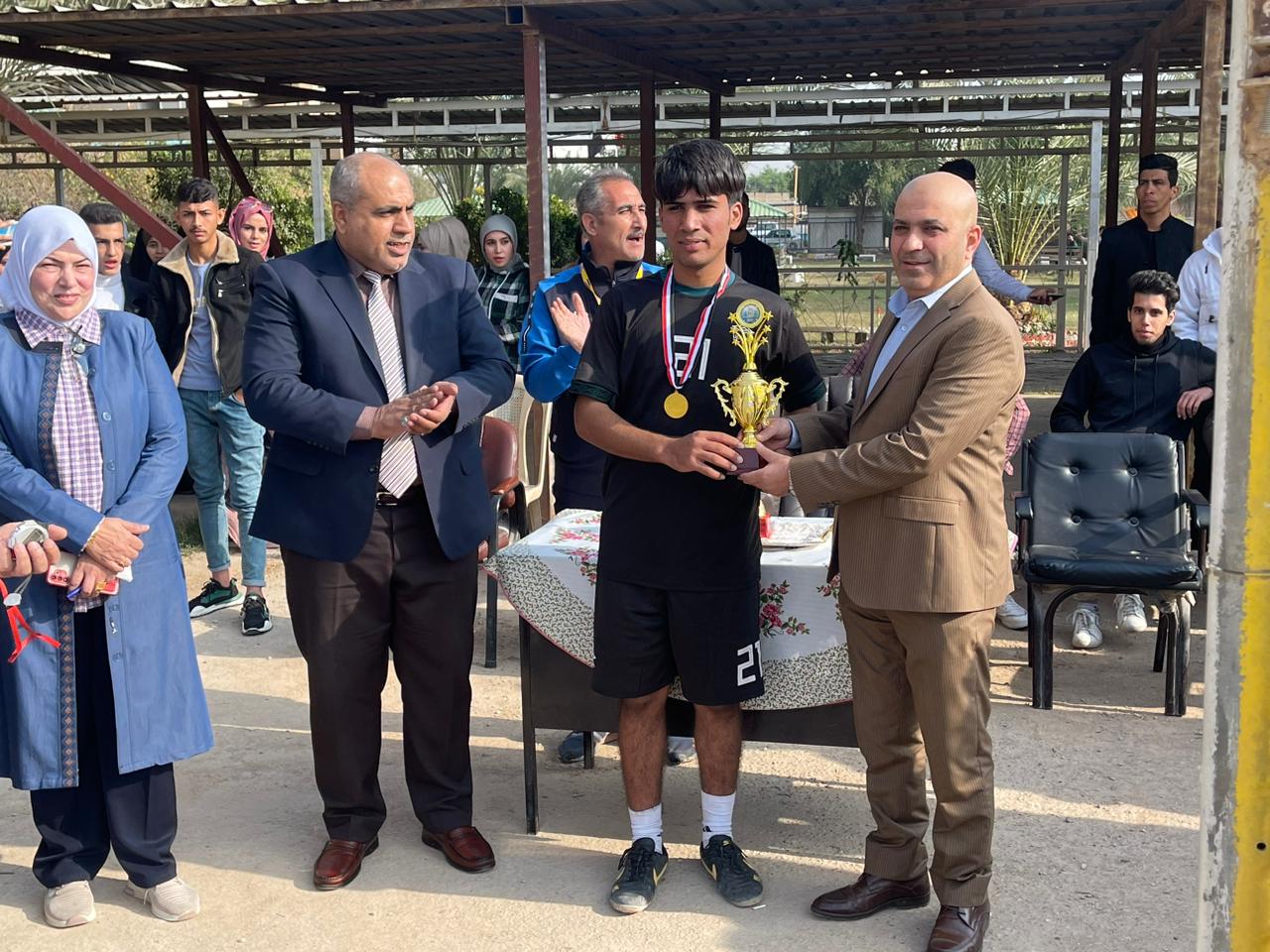 فاز فريق قسم المالية والمصرفية في كلية العلوم الاسلامية بجامعة بغداد بكأس بطولة الكلية في خماسي كرة القدم “طلبه”، وذلك بعد تغلبه علي قسم اللغة العربية بهدفين نظيفين لتحصد المركز الاول وذلك بالبطولة التي نظمتها إدارة النشاط الرياضي بالكلية باشراف الدكتور عدي جميل شهاب مسؤول الوحدة والمدرب عبد الرسول قدوري شويش.