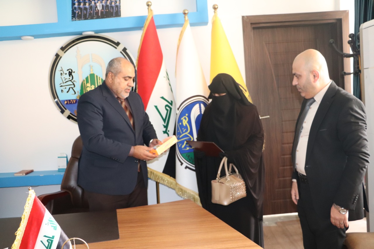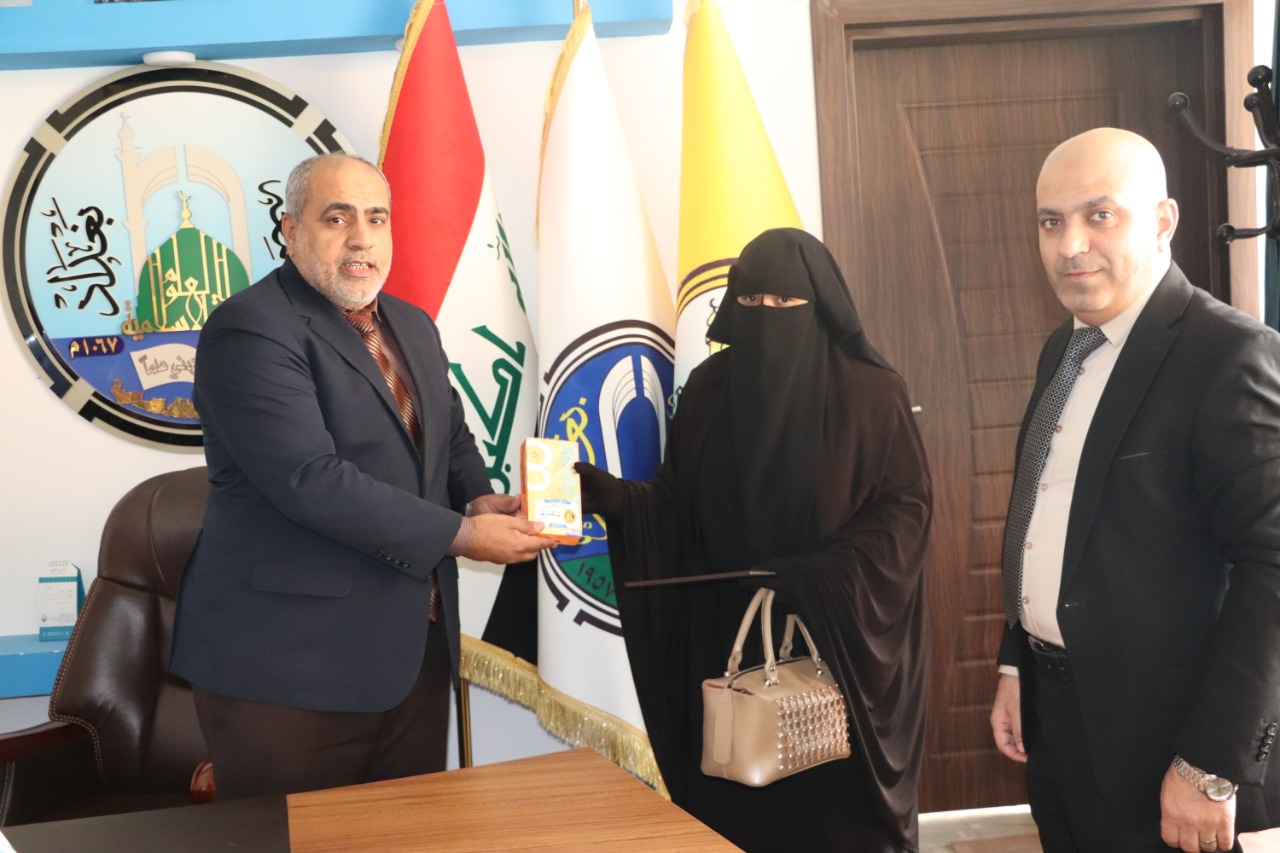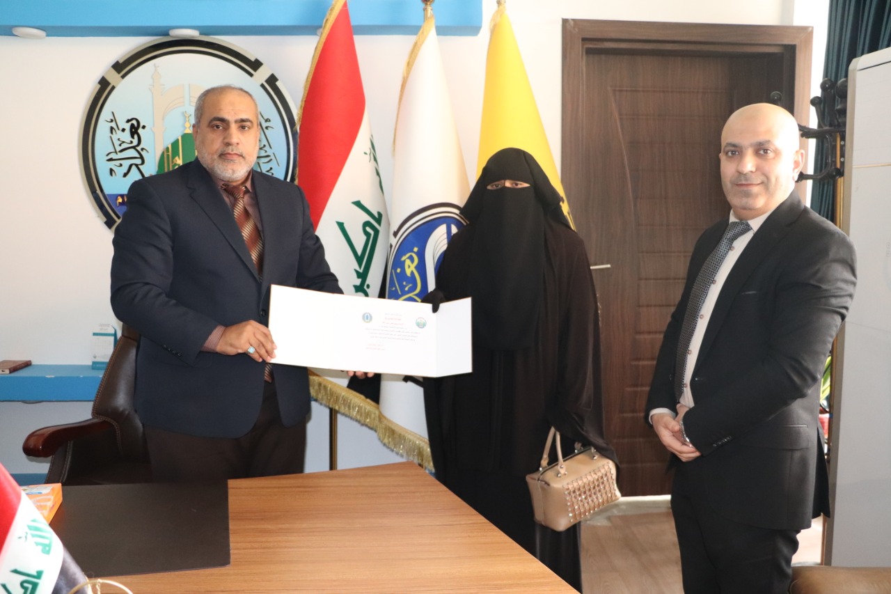 كرم عميد كلية العلوم الاسلامية بجامعة بغداد الاستاذ الدكتور نعمة دهش فرحان الطالبة رونق معمرعبدالله الثانية على الكلية والاولى على قسم العقيدة والفكر الاسلامي للدراستين الصباحية والمسائية بكتاب شكر وهدية رمزية تثميناً وتقديراً لجهودها المبذولة في الوصول إلى هذه المرتبة وبمعدل (94.59)، متمنيا لها دوام التوفيق من اجل تعزيز المسيرة العلمية وخدمة بلدنا الحبيب.