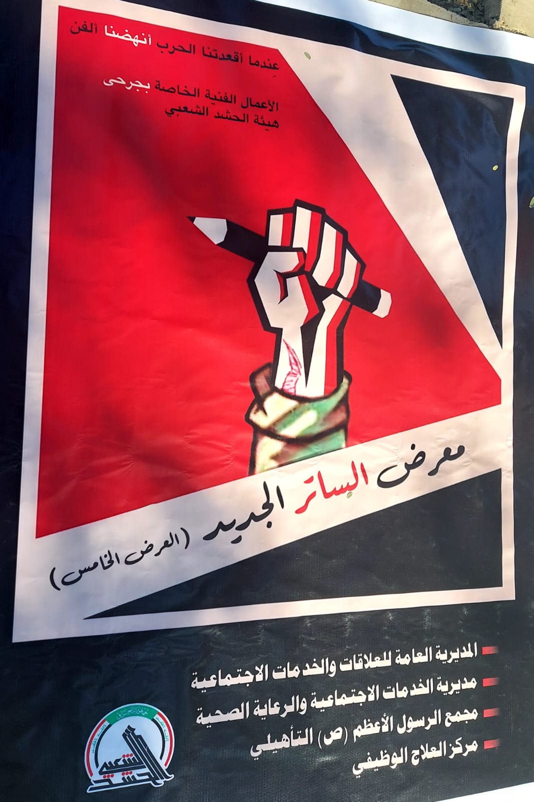 المعرض شهد عرض لوحات وبوسترات فنية مختلفة خُطت هذه الاعمال الفنية بأيادي مقاتلي الحشد الشعبي التي كانت بالامس تحمل السلاح واليوم حملت الفرشاة والالوان لترسم الامل لحياة افضل ، وقد مثل الكلية في ذلك المعرض التدريسي في قسم الاديان الدكتور ايمن الفضلي.
