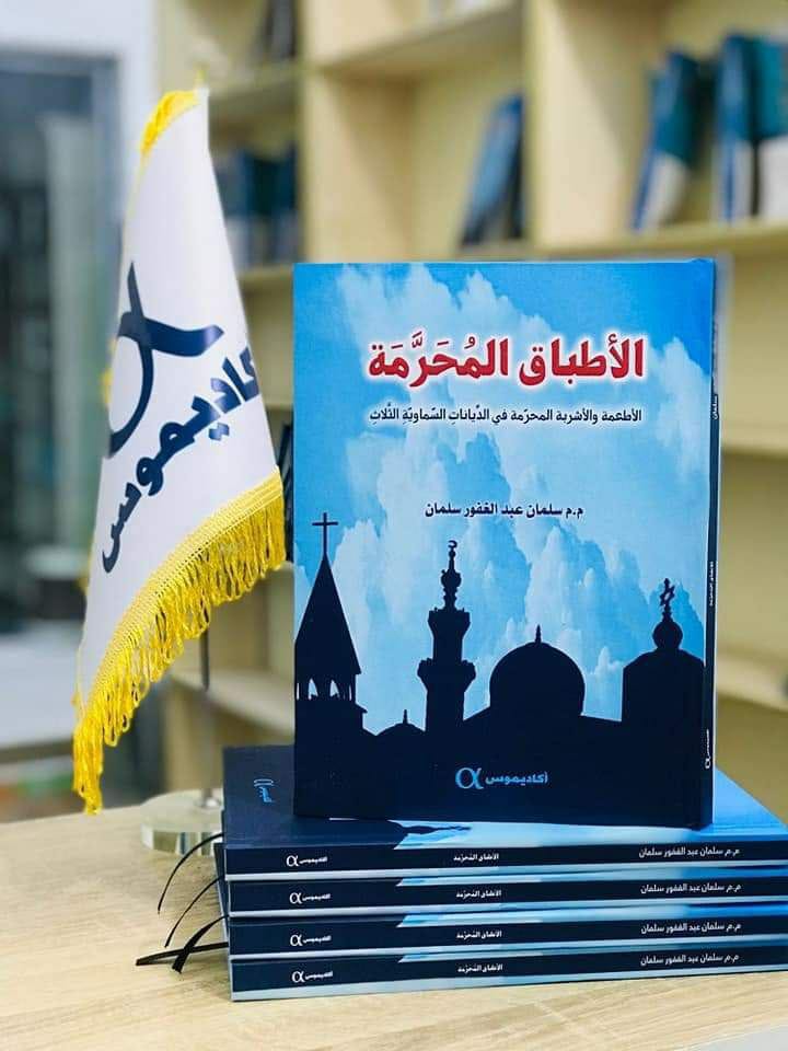 صدر لطالب الدكتوراه في قسم العقيدة الاسلامية في كلية العلوم الاسلامية بجامعة بغداد الدكتور سلمان عبد الغفور سلمان كتابا بعنوان (الأطباق المحرّمة -الأطعمة والأشربة المحرّمة في الديانات السماويّة الثلاث-))،وتالف الكتاب الذي يقع في210 صفحة اربعة فصول هي الفصل الاول كان عن الاطعمة والاشربة المحرمة في الديانة اليهودية اما الفصل الثاني كان عن الاطعمة والاشربة المحرمة في الديانة المسيحية الثالث تناول الاطعمة والاشربة المحرمة في الدين الاسلامي اما الفصل الاخير فكان دراسة مقارنة .