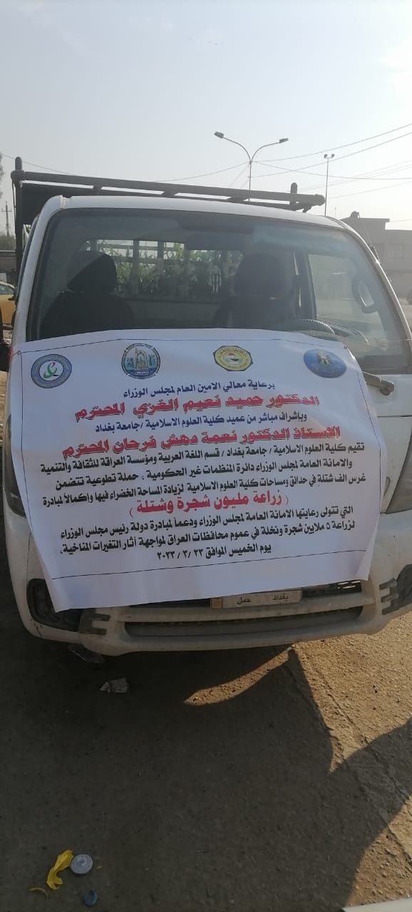وبإشراف مباشر من عميد كلية العلوم الاسلامية بجامعة بغداد الاستاذ الدكتور نعمة دهش فرحان وتزامناً مع بداية فصل الربيع انطلقت صباح هذا اليوم الخميس حملة تشجير فضاءات وحدائق كلية العلوم الاسلامية بالتعاون مع مؤسسة العراقة للثقافة والتنمية والامانة العامة لمجلس الوزراء ودائرة المنظمات غير الحكومية ،حملة تطوعية تتضمن غرس أكثر من الف شتلة زراعية من قبل منتسبي الوحدة الزراعية في الكلية .