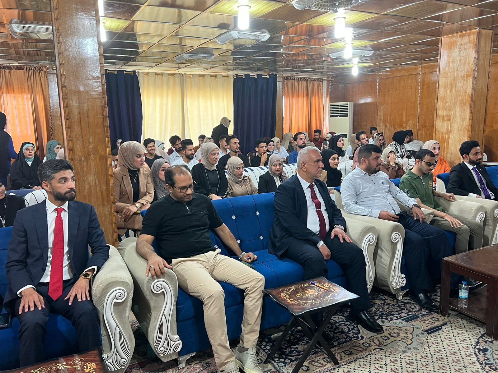 و حضر المناقشة السيد معاون العميد للشؤون الادارية ا.م.د.اركان رحيم جبر وقد اشاد بالتنظيم والالية المتبعة في المناقشة اذ سادت مراسيم المناقشة اجواء علمية أشعرت الطلبة الباحثين بقرب قطف ثمار سنوات الدراسة الاربع وهم يقدمون على مناقشة مشاريعهم البحثية التي ستؤهلهم لنيل شهادة البكالوريوس في تخصص اللغة العربية هذه المشاريع كانت خلاصة ما أخذه الطلاب خلال فترة دراستهم .