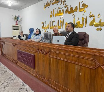 نظمت وحدة الشؤون العلمية في كلية العلوم الاسلامية بجامعة بغداد بالتعاون مع قسم اللغة العربية ورشة عمل بعنوان ” منظومة الخبرة العلمية الالكترونية – محتوياتها والية التعامل معها.” على قاعة العلماء .