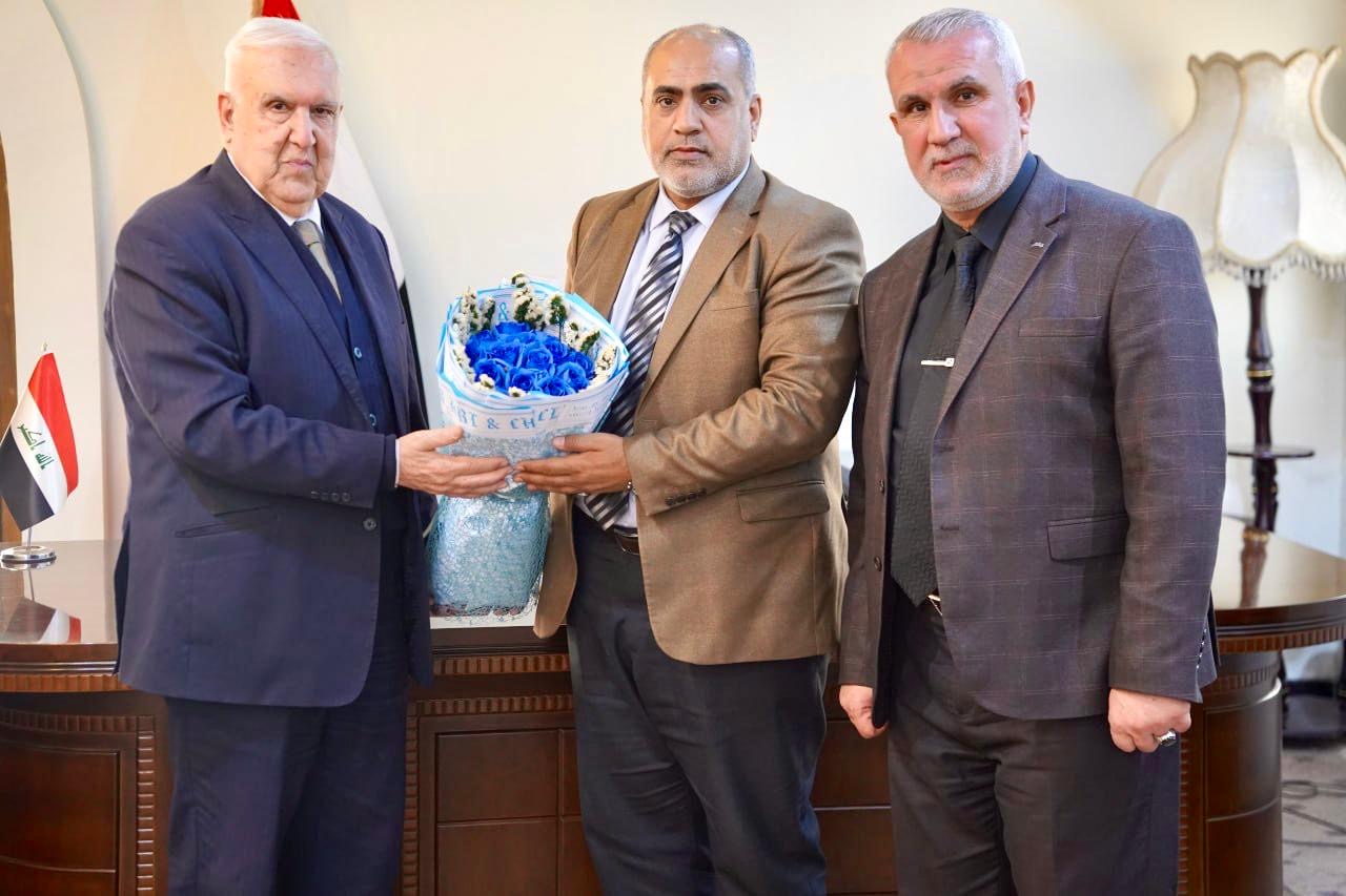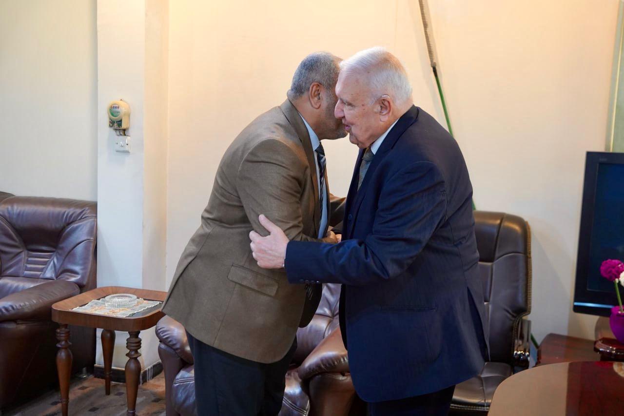 في خطوة تعكس عمق التعاون الأكاديمي والعلمي في العراق، التقى عميد كلية العلوم الإسلامية بجامعة بغداد الاستاذ الدكتور نعمة دهش فرحان ومعاونه الإداري الاستاذ الدكتور اركان رحيم جبر برئيس المجمع العلمي العراقي الأستاذ الدكتور محمد حسين آل ياسين في مكتبه.