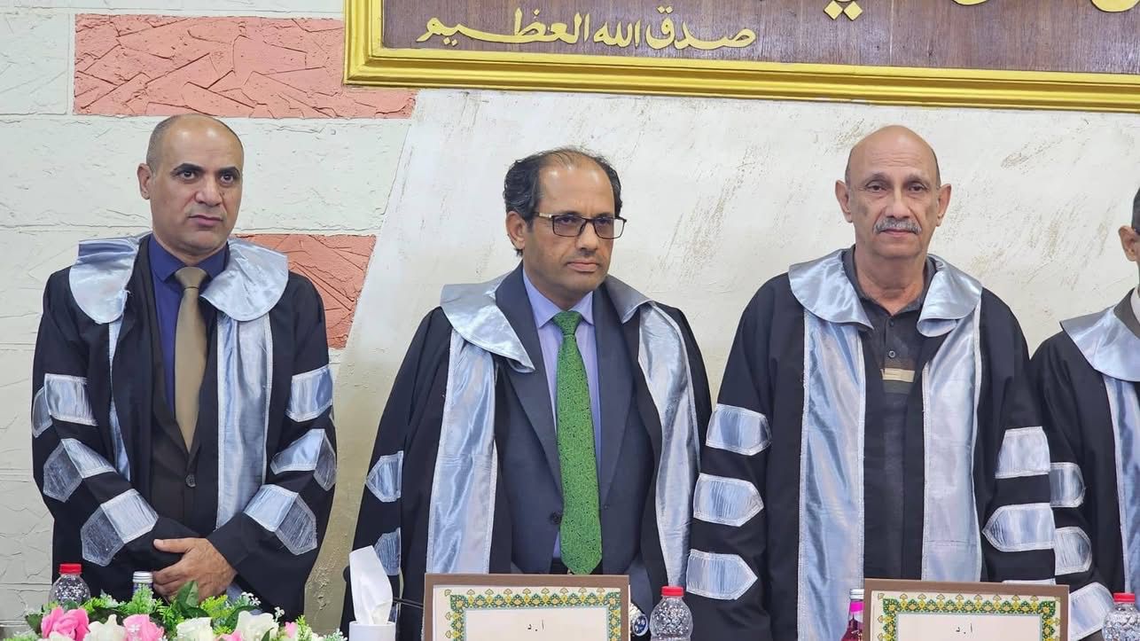 وجاءت مشاركة الدكتور علي حلو حواس ضمن لجنة علمية رفيعة المستوى،ضمّت نخبة من الأساتذة المتخصصين في الدراسات اللغوية والقرآنية حيث شهدت المناقشة حوارًا علميًّا ثريًّا اتسم بالتحليل العميق والرؤية اللغوية الدقيقة تناولت فيه اللجنة محاور الأطروحة التي بحثت في مفهوم “التسوير” بوصفه بنية دلالية ولسانية تتجلى في النص القرآني الكريم.