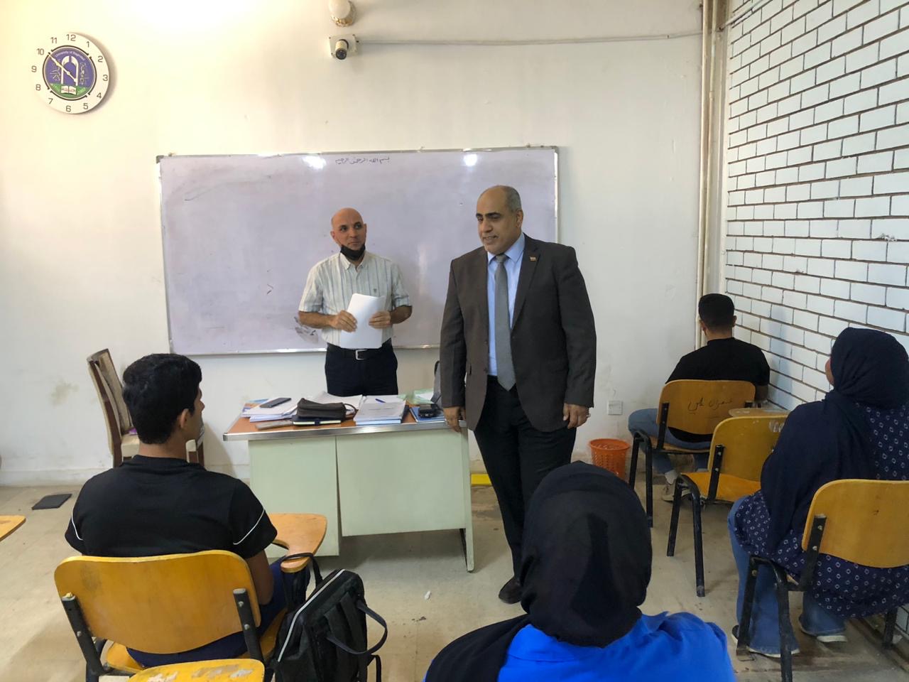 وخلال جولته التقى السيد العميد بعدد من رؤساء الأقسام وأعضاء الهيئة التدريسية مؤكداً أهمية تهيئة بيئة علمية مثالية تواكب متطلبات المرحلة وتضمن نجاح العام الدراسي كما استمع إلى ملاحظات الطلبة حول طبيعة المحاضرات والبنى التحتية للقاعات الدراسية موجهاً بضرورة تذليل العقبات التي تواجههم وتعزيز الجوانب الأكاديمية والخدمية.