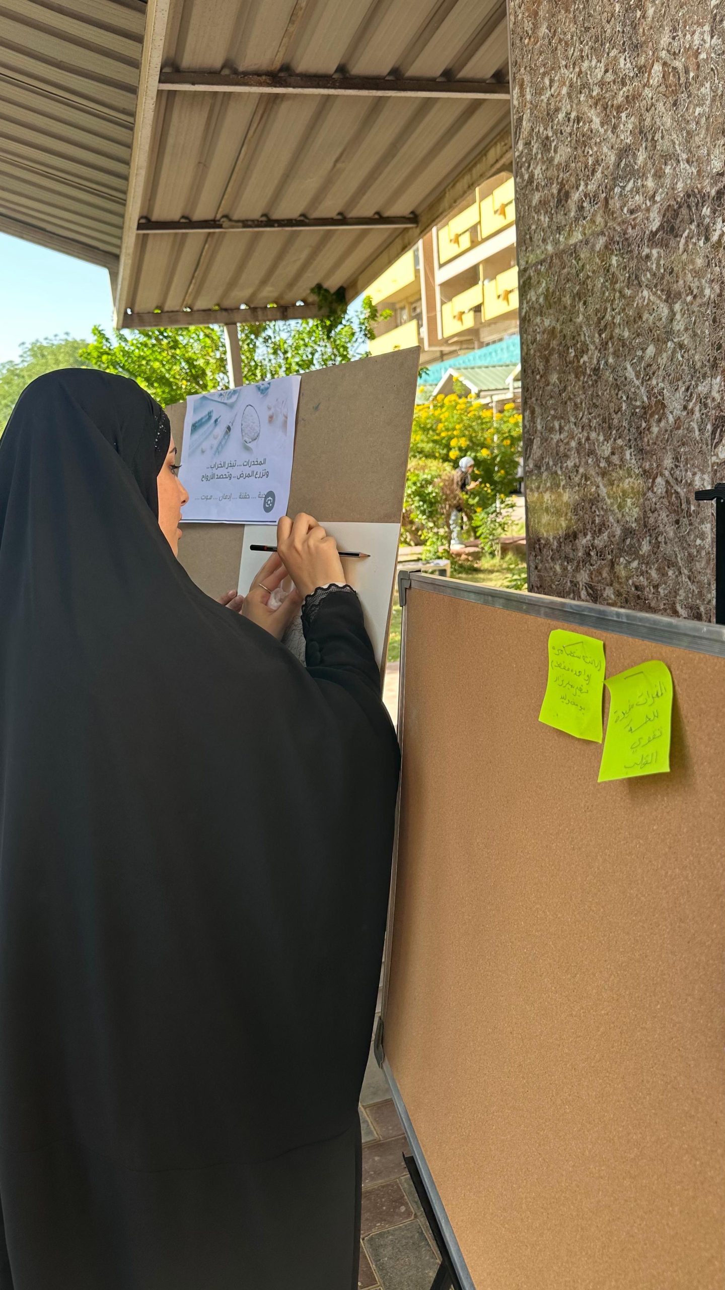 وشهدت أروقة الكلية إقامة نشاطات فنية متنوعة حيث قام الطلبة برسم جداريات وبوسترات يدوية عُلِّقت في ممرات الكلية حملت رسائل توعوية تحثّ على نبذ المخدرات وتعزيز السلوك الإيجابي كما تم تنظيم “حائط الحرية” الذي دوّن عليه الطلبة عبارات معبّرة ترفض الإدمان وتدعم بيئة جامعية آمنة وخالية من المخاطر. وقدّم الطلبة أيضاً لوحات فنية جسدت الفارق بين الحياة الصحية وآثار الإدمان في تجسيد بصري مؤثر لرسالة الحملة.
