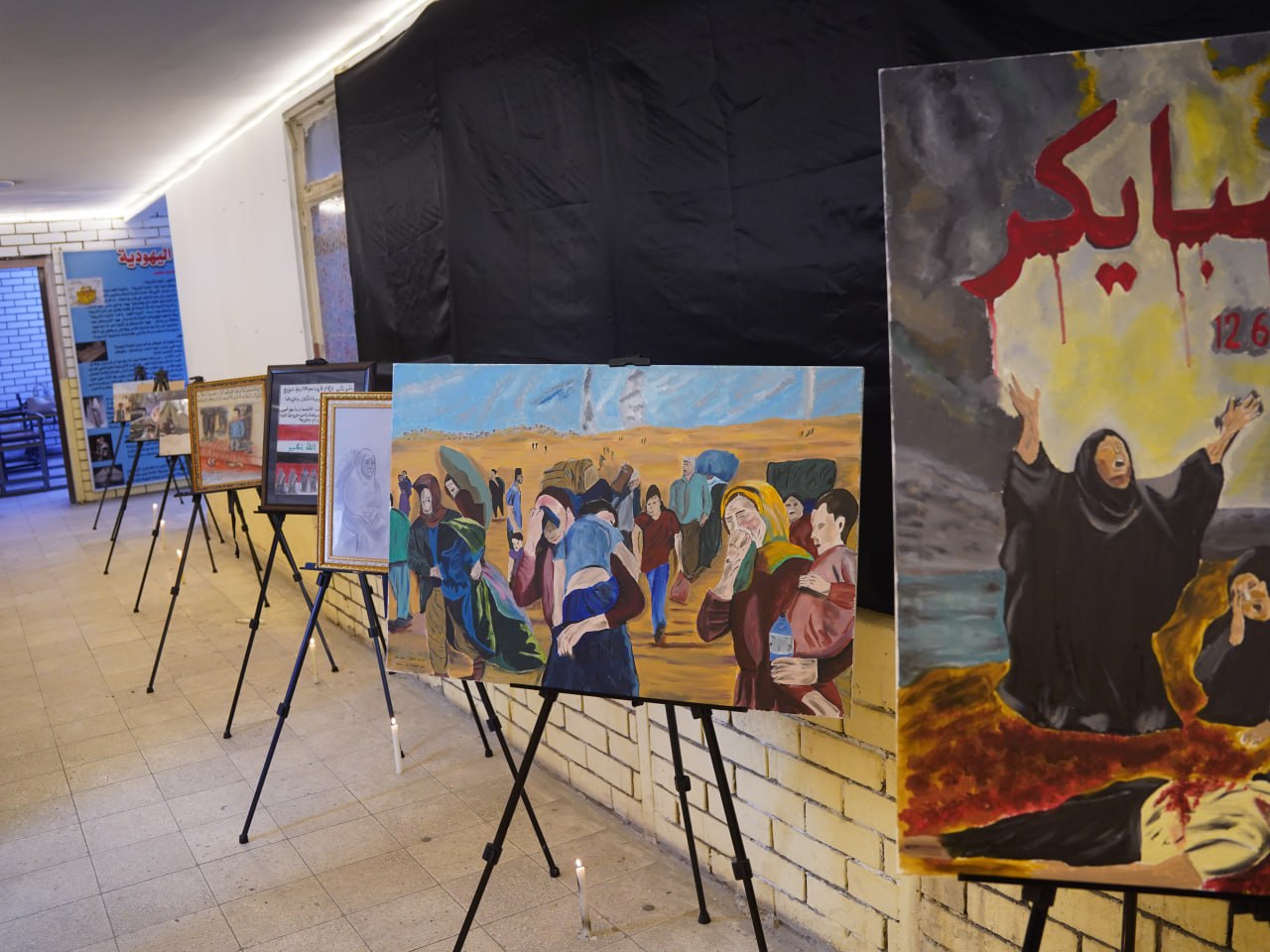 وضم المعرض مجموعة من الأعمال الفنية المؤثرة التي جسدت في طياتها حجم المعاناة الإنسانية مسلطةً الضوء على جريمة “مجزرة سبايكر” الأليمة التي يندى لها جبين الإنسانية بالإضافة إلى ما تعرض له المكون الإيزيدي من جرائم إبادة وتهجير.