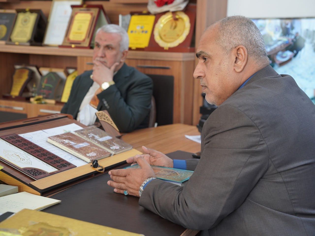 بحث الأستاذ الدكتور نعمة دهش فرحان عميد كلية العلوم الإسلامية في جامعة بغداد آفاق التعاون العلمي والفكري المشترك مع قسم الشؤون الفكرية والثقافية في العتبة العباسية المقدسة بما يعزز التكامل بين المؤسستين في خدمة المعرفة الإسلامية الرصينة.