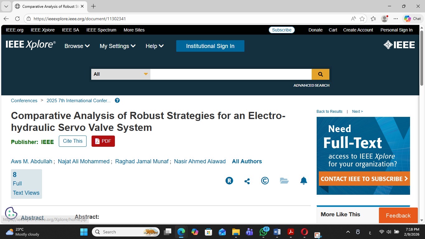 في إنجاز علمي متميز يظهر الحضور البحثي المتقدم لجامعة بغداد تم نشر بحث علمي للتدريسي في كلية العلوم الإسلامية الدكتور أوس محمود ضمن وقائع المؤتمر الدولي السابع حول أنظمة التحكم النمذجة الرياضية الأتمتة وكفاءة الطاقة (SUMMA 2025) والذي أُدرج رسمياً في المكتبة الرقمية التابعة لـ IEEE Xplore مع الإعلان عن إدراجه قريباً ضمن مستوعب Scopus العالمي.